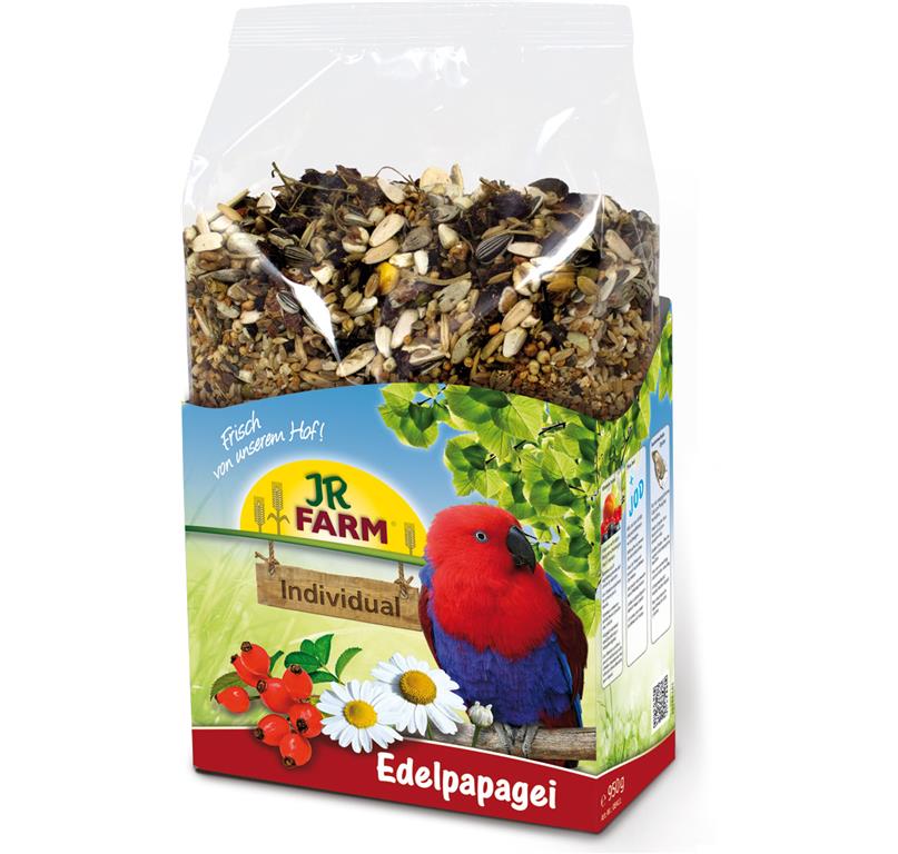 je hrana, ki je popolnoma prilagojena eklektusom. JR FARM je obogatena s toplotno obdelanimi lupinami ostrig za uravnoteženo razmerje med kalcijem in fosforjem ter bistvenimi vitamini in elementi v sledeh v vseh sestavinah. Beta karoten iz naravnega korenja uravnava preskrbo z vitaminom A, dolgo verižna fruktoza pa podpira prebavo s spodbujanjem bakterij v debelem črevesju.