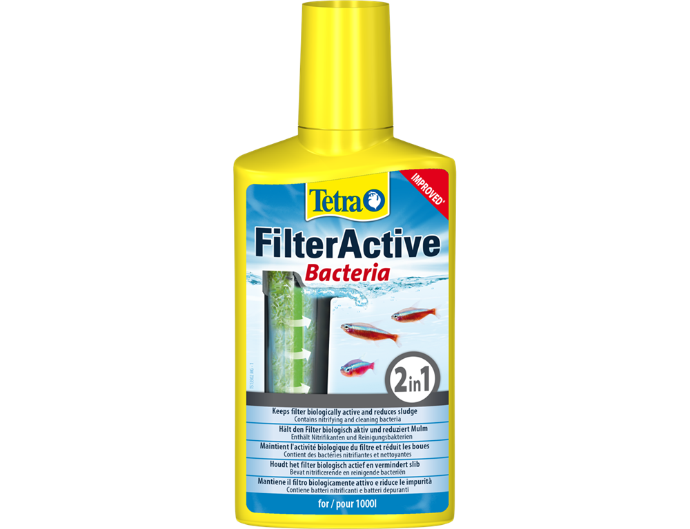 Tetra FilterActive ohranja filter biološko aktiven in s svojim naravnim delovanjem dlje čist. Vsebuje žive zaganjalne bakterije in čistilne bakterije, ki zmanjšujejo blato, ki pospešujejo biološko razgradnjo amoniaka, nitrita, ribjih odpadkov, blata, hrane in rastlinskih ostankov ter filtrirajo blato.