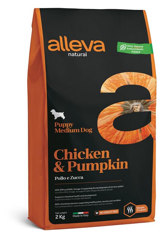 NAD540 - Alleva Natural PUPPY medium – PIŠČANEC & BUČA