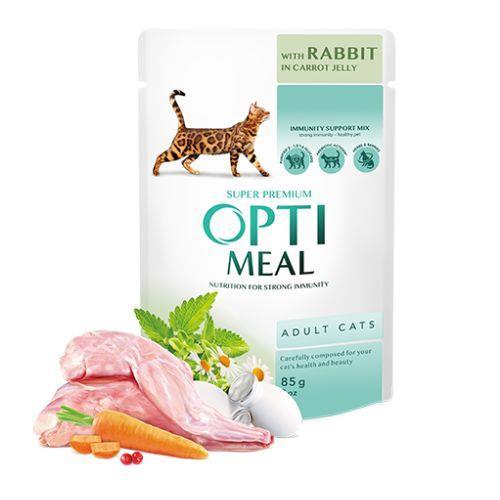 OPTI MEAL Cat Adult vrečka - KUNEC s korenjem v želeju 85 g