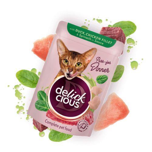 Razkošen okus sočne race, združen z nežnim piščančjim filejem in hranljivo špinačo, bo vsak košček spremenil v pravo pojedino za mačje čute. Polno vitalnih hranil za zdravje odraslih mačk.