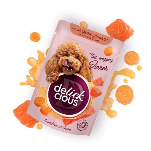 DELICKCIOUS Trakovi z LOSOSOM in korenjem v kremni omaki, 85g