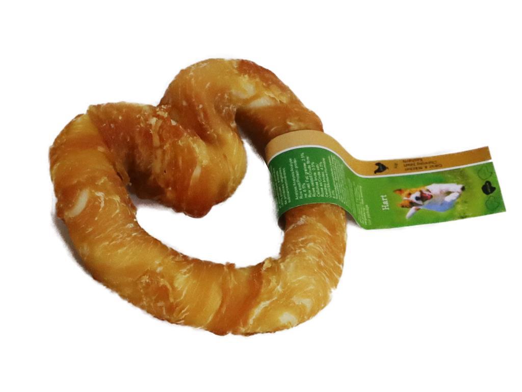 Ta srček s piščancem je narejen iz bele bivolje kože, ovite z okusno hrustljavo plastjo piščanca. Kombinacija teh sestavin ustvari neustavljivo poslastico za vašega psa. Srčkasta oblika poskrbi, da je priboljšek še posebej privlačen in prepoznaven.
