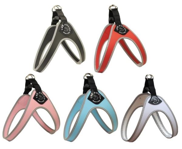 TRE PONTI Easy Fit oprsnica je praktična in enostavna za namestitev ter odstranitev. Njena posebna ergonomska oblika ne drgne občutljivih predelov kože za tačkami, klipsna pa omogoča hitro zapenjanje in odpenjanje oprsnice. Narejena je iz posebnega mehkega in gibljivega materiala, na katerega se ne prijema dlaka, je enostaven za čiščenje ter je vodoodporen. Oprsnica ima reflektivno obrobo, ki bo ponoči vašega psa naredila bolj vidnega.