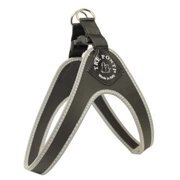 TRE PONTI Easy Fit oprsnica je praktična in enostavna za namestitev ter odstranitev. Njena posebna ergonomska oblika ne drgne občutljivih predelov kože za tačkami, klipsna pa omogoča hitro zapenjanje in odpenjanje oprsnice. Narejena je iz posebnega mehkega in gibljivega materiala, na katerega se ne prijema dlaka, je enostaven za čiščenje ter je vodoodporen. Oprsnica ima reflektivno obrobo, ki bo ponoči vašega psa naredila bolj vidnega.