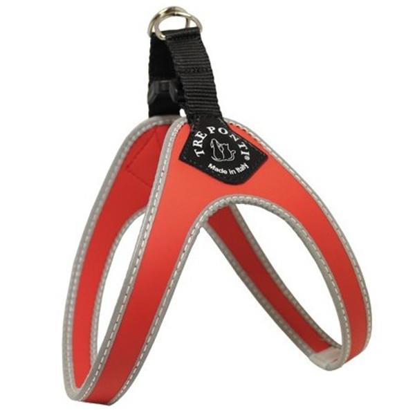 TRE PONTI Easy Fit oprsnica je praktična in enostavna za namestitev ter odstranitev. Njena posebna ergonomska oblika ne drgne občutljivih predelov kože za tačkami, klipsna pa omogoča hitro zapenjanje in odpenjanje oprsnice. Narejena je iz posebnega mehkega in gibljivega materiala, na katerega se ne prijema dlaka, je enostaven za čiščenje ter je vodoodporen. Oprsnica ima reflektivno obrobo, ki bo ponoči vašega psa naredila bolj vidnega.