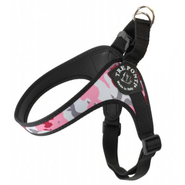 TRE PONTI Easy Fit oprsnica je praktična in enostavna za namestitev ter odstranitev. Njena posebna ergonomska oblika ne drgne občutljivih predelov kože za tačkami, spodnji trak pa lahko po potrebi zožite ali razširite in s tem oprsnico natančno prilagodite velikosti prsnega koša psa. Narejena je iz posebnega mehkega in gibljivega materiala, na katerega se ne prijema dlaka, je vodoodporen in je enostaven za čiščenje. V trendovskem vojaškem vzorcu.
