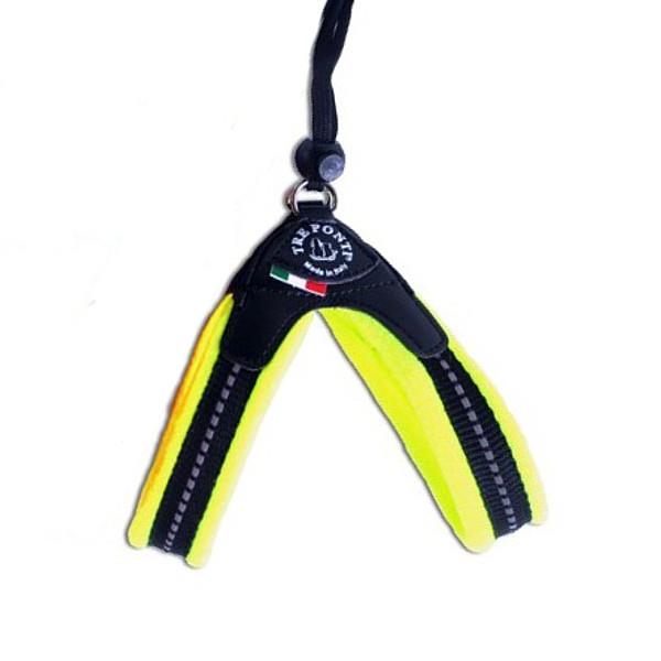 TRE PONTI Easy Fit Soft oprsnica je praktična in enostavna za namestitev ter odstranitev. Njena posebna ergonomska oblika ne drgne občutljivih predelov kože za tačkami, zaradi posebnega sistema zapenjanja pa jo lahko natančno prilagodimo velikosti trupa psa. Narejena je iz močnega poliestrskega traku, na katerem je reflektivni šiv in mehkega flisa za podlogo, ki daje psu maksimalno udobje med nošnjo oprsnice.