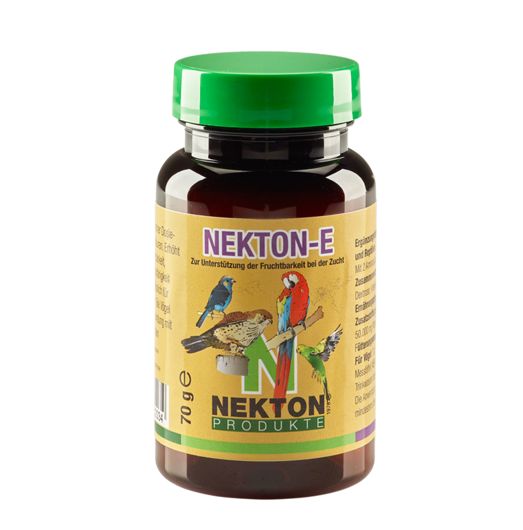 NEKTON-E je še zlasti primeren za rejce ptic saj vzpodbuja nagon po parjenju. Njegov učinek na reproduktivne organe in spolne hormone je zelo pomemben. Pomanjkanje vitamina E pri živalih povzroča odsotnost želje po parjenju in v določenih primerih tudi sterilnost. Pogosto rezerva vitamina E pri pticah (samice) ni zadostna za razvoj embria in mladičev. Z zagotavljanjem zadostne količine vitamina E pred izvalitvenim obdobjem, lahko rejec pričakuje večji odstotek ptičjih jajc, manjšo neplodnost, večjo možnost izvalitve ter manjšo stopnjo smrtnosti pri embriih in mladičih.