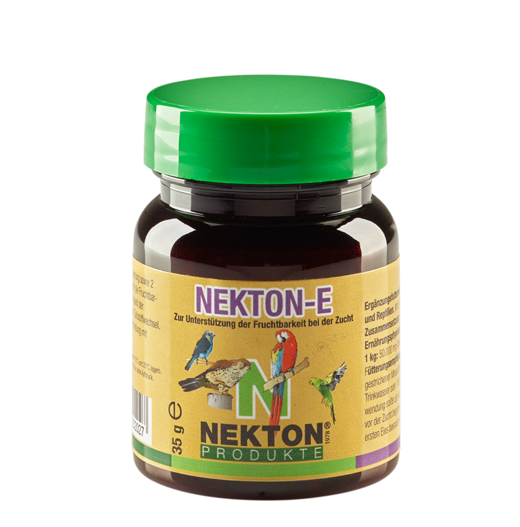 NEKTON-E je še zlasti primeren za rejce ptic saj vzpodbuja nagon po parjenju. Njegov učinek na reproduktivne organe in spolne hormone je zelo pomemben. Pomanjkanje vitamina E pri živalih povzroča odsotnost želje po parjenju in v določenih primerih tudi sterilnost. Pogosto rezerva vitamina E pri pticah (samice) ni zadostna za razvoj embria in mladičev. Z zagotavljanjem zadostne količine vitamina E pred izvalitvenim obdobjem, lahko rejec pričakuje večji odstotek ptičjih jajc, manjšo neplodnost, večjo možnost izvalitve ter manjšo stopnjo smrtnosti pri embriih in mladičih.