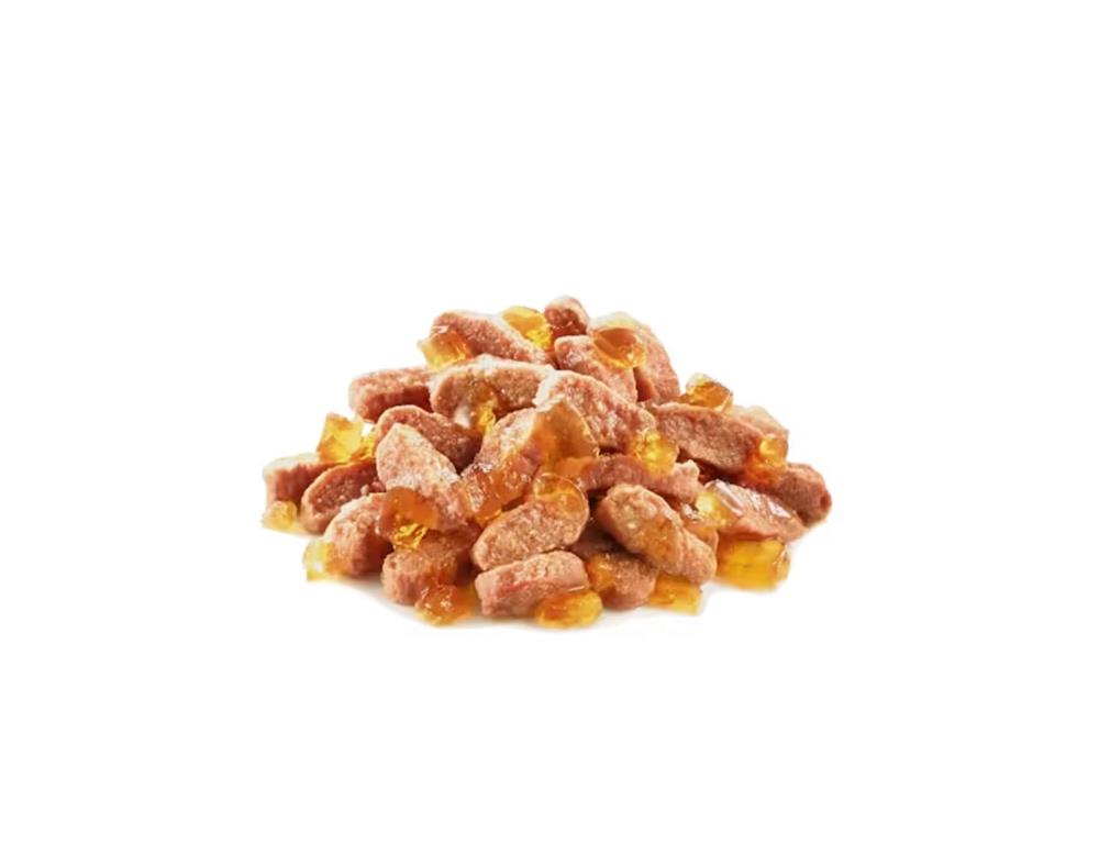 Popolna hrana za mačke – Posebej za sterilizirane/kastrirane odrasle mačke (tanki koščki v želeju).