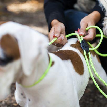 Povodec–lasso Doogy Classic Run Around je izdelan iz trpežne pletene najlonske vrvi z všitimi odbojnimi črtami, ki poskrbijo za večjo varnost med sprehodi v temi ali ob slabši vidljivosti. Sistem drsnika na koncu povodca omogoča, da enostavno oblikujete ovratnico po meri.
