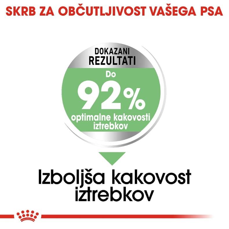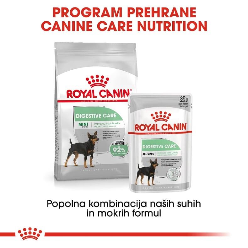 Hrana ROYAL CANIN® Digestive Care Mini je primerna za pse, težke do 10 kg, in je pripravljena po izjemno okusnem receptu, posebej prilagojenem psom z občutljivo prebavo.