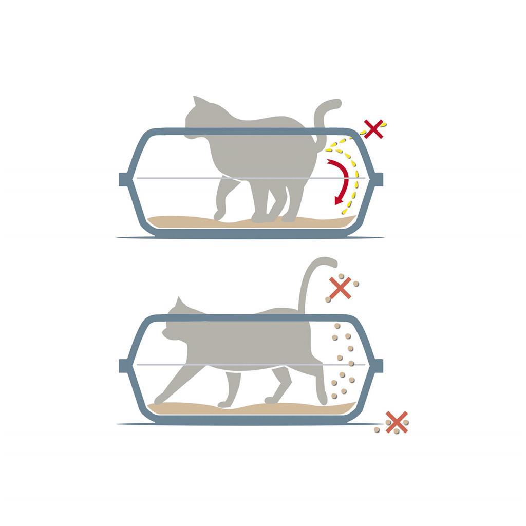 Prostoren dizajn z visokimi stranicami: Ta WC je idealen za velike mačke, saj jim omogoča dovolj prostora za udobno opravljanje potrebe. Visoke stranice preprečujejo iztekanje urina in peska na tla, s čimer vašo sobo ohranjajo čisto.